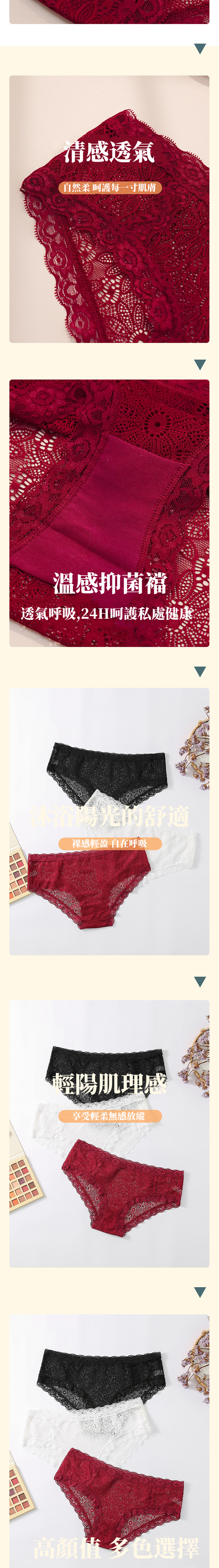 性感蕾絲鏤空透氣棉襠中腰三角內褲