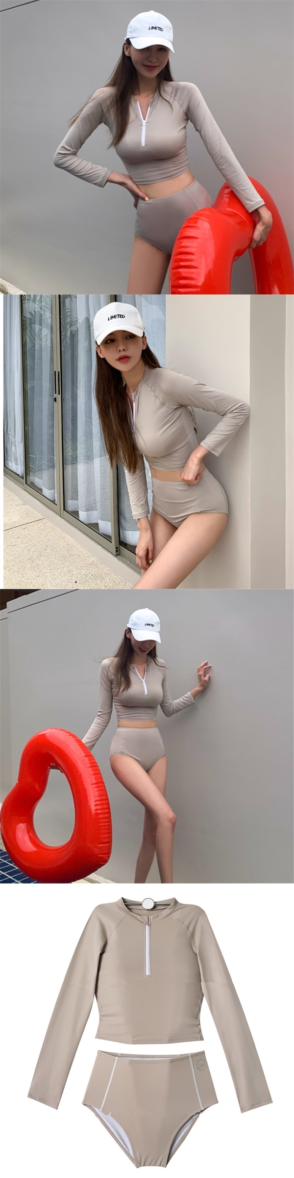 韓版長袖拉鍊緊身分體泳裝