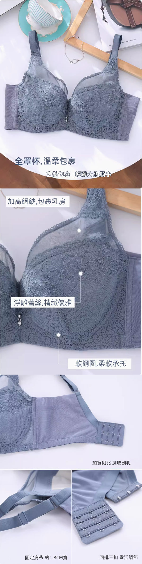 大胸顯小全罩杯薄款軟鋼圈透氣舒適內衣