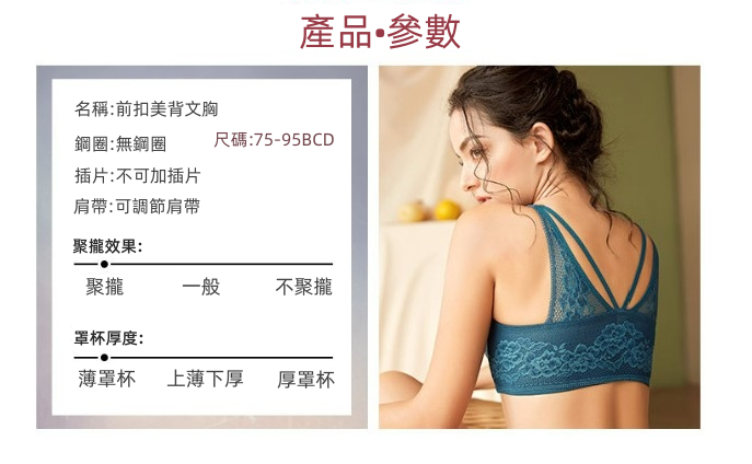 升級款大尺碼前扣美背無鋼圈薄款性感內衣