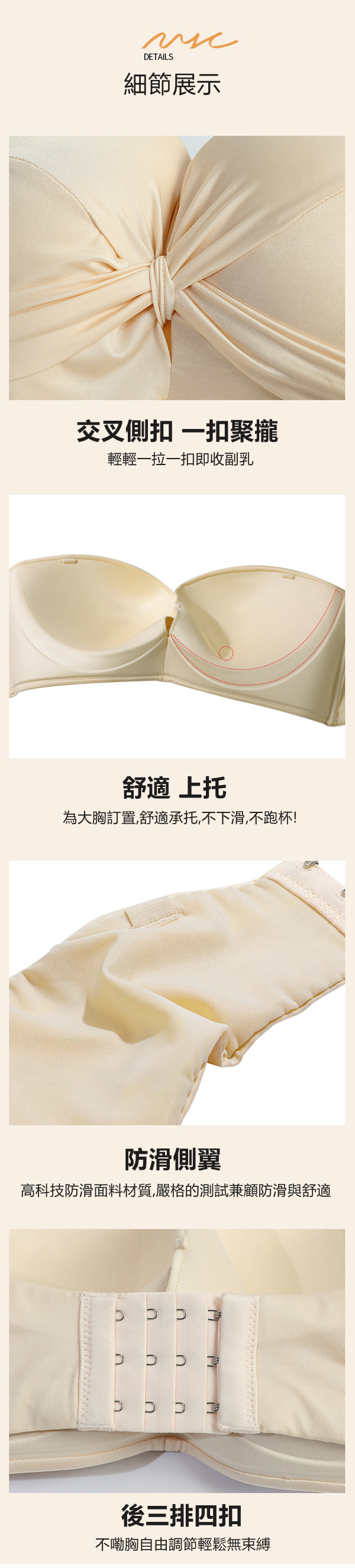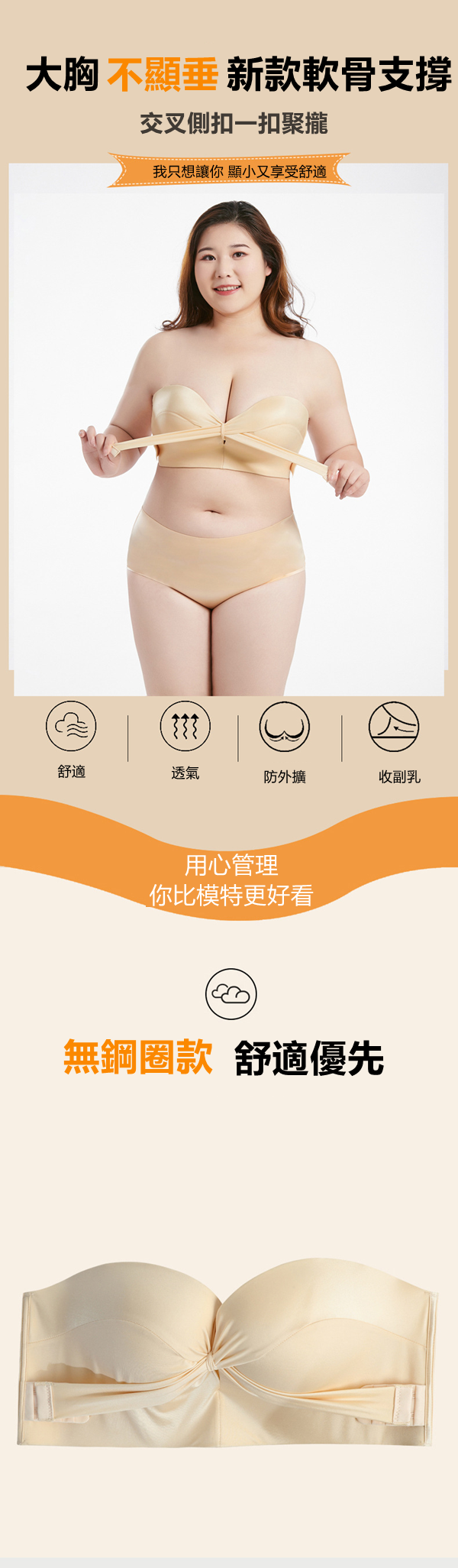 大尺碼聚攏無鋼圈大胸可拆肩帶平口內衣