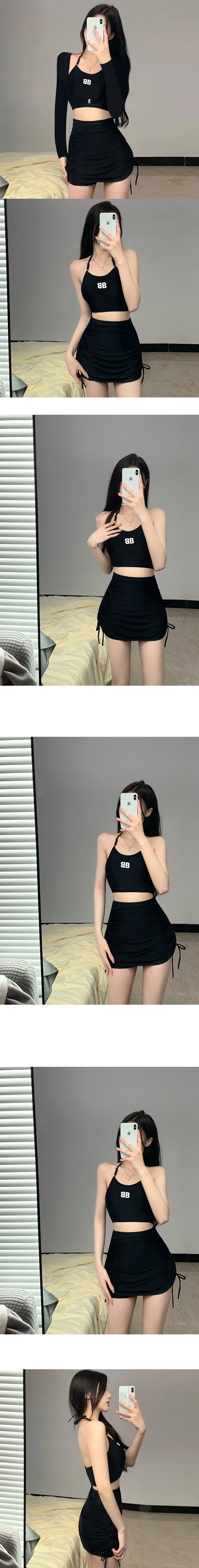 性感掛脖修身顯瘦高腰包臀三件套裝(有胸墊)