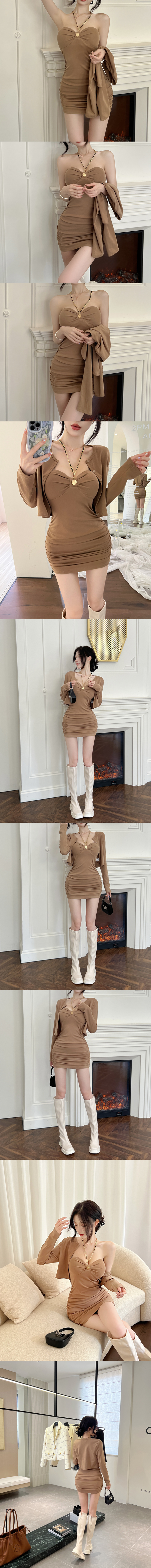 中大尺碼 氣質掛脖性感辣妹修身包臀顯瘦兩件式套裝