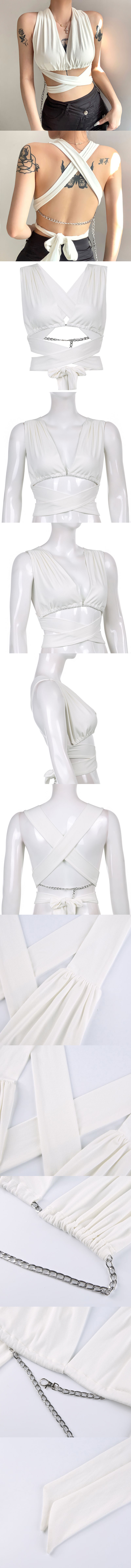 交叉綁帶露背性感百搭顯胸型短版背心