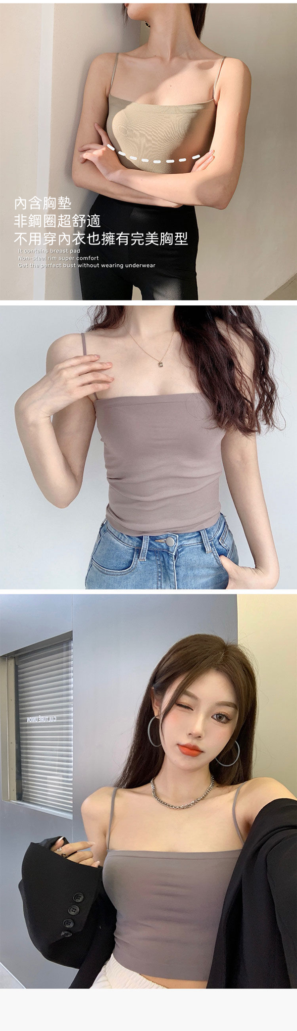 中大尺碼 簡約百搭帶胸墊舒適吊帶背心