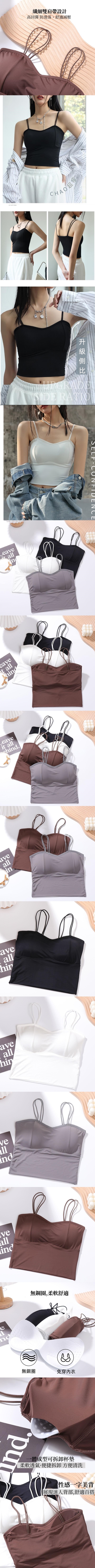 美背雙肩帶冰絲加厚款帶胸墊短款Bra Top