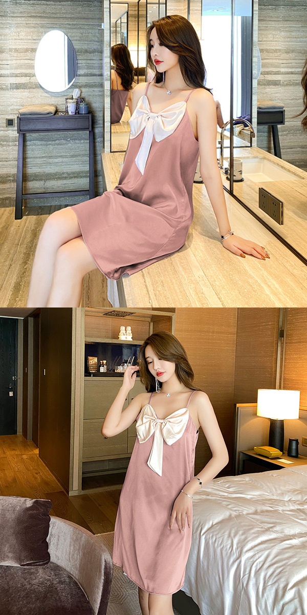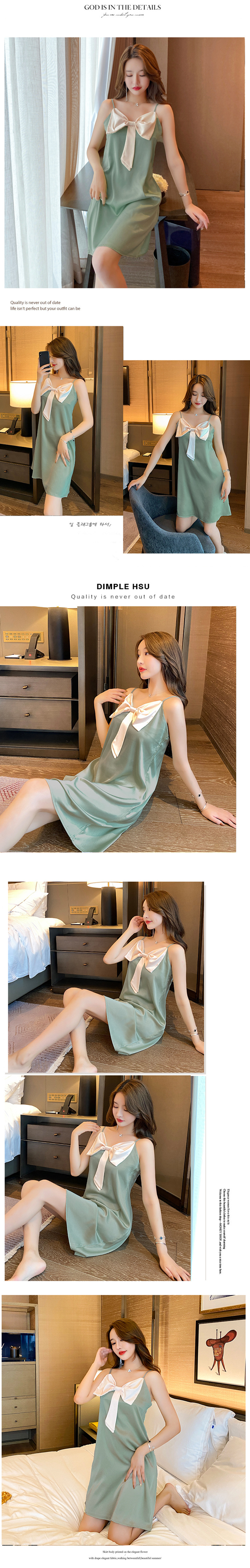 冰絲蝴蝶結吊帶連身裙(胸墊)