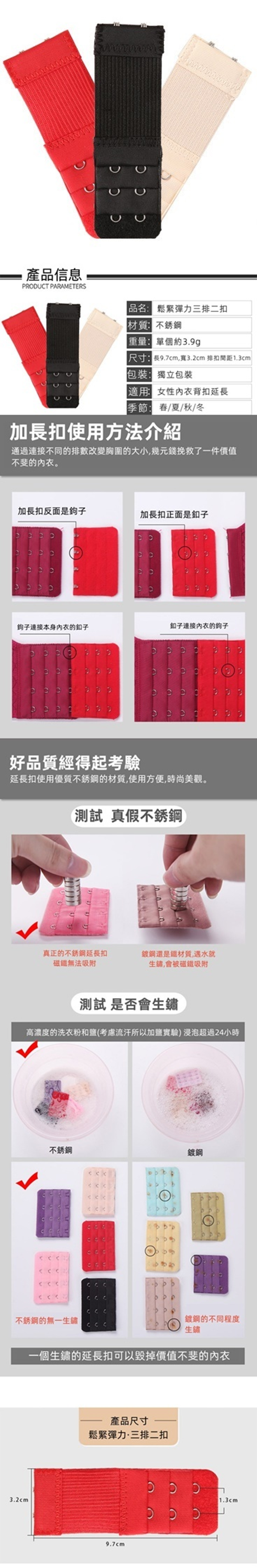 彈力排扣加長鬆緊噴漆不銹鋼內衣背扣