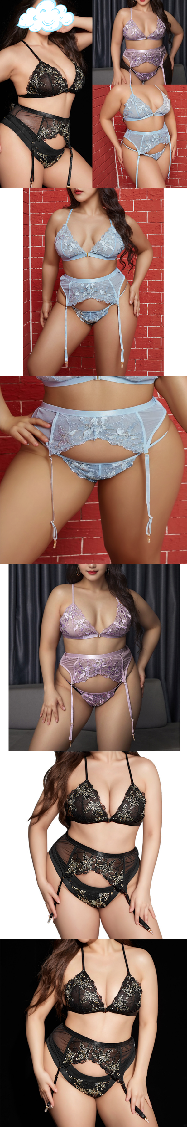 中大尺碼緹花情趣性感吊襪帶