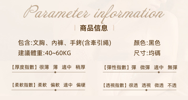 ■商品內容:文胸x1、內褲x1、手銬x2(含牽引繩)