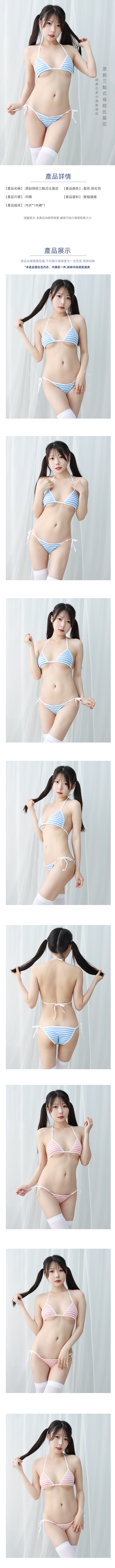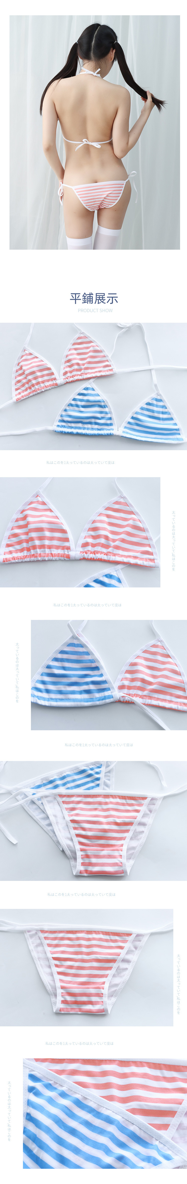 二次元胖次橫條紋三點式綁帶情趣比基尼