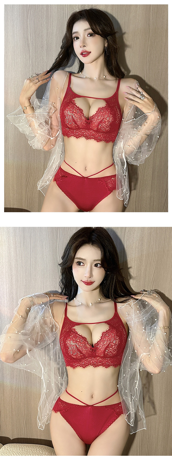 蕾絲美背前胸交叉無鋼圈性感火辣手掌杯內衣