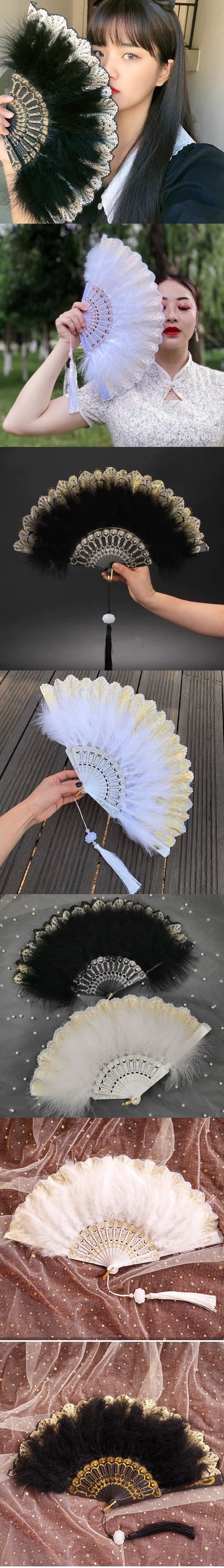 日系羅莉塔復古燙金羽毛單面扇子
