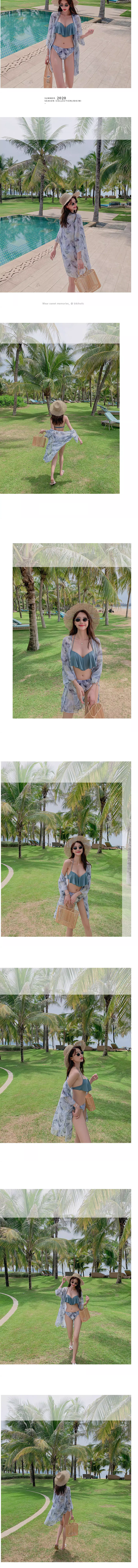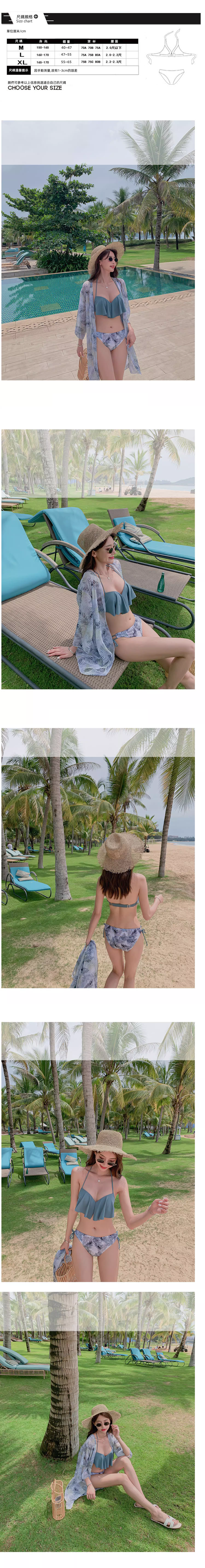 荷葉綁繩比基尼罩衫三件組(胸墊)