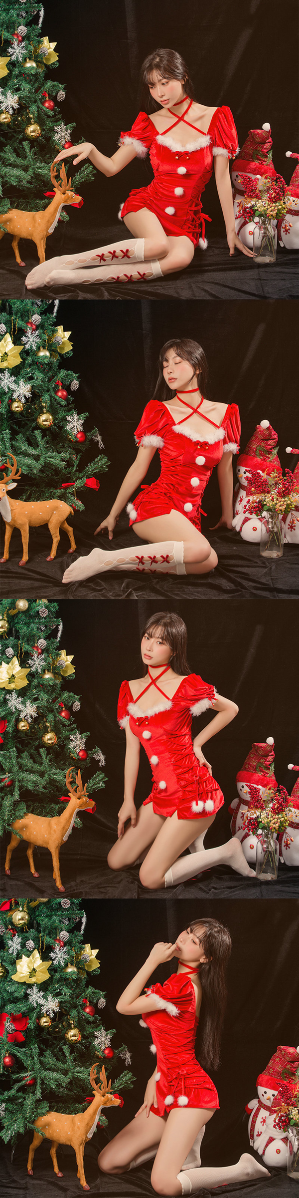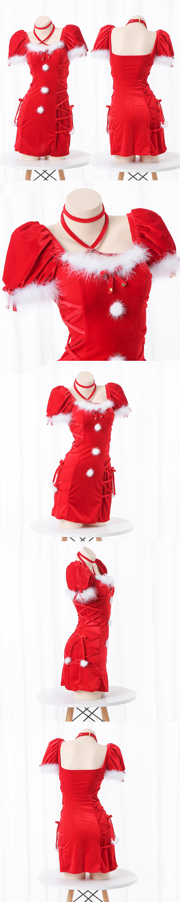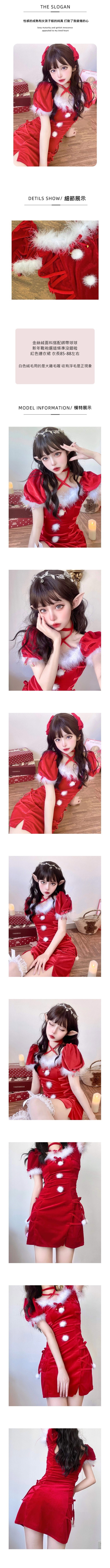聖誕氛圍性感包臀戰袍一字露肩絲絨連衣裙