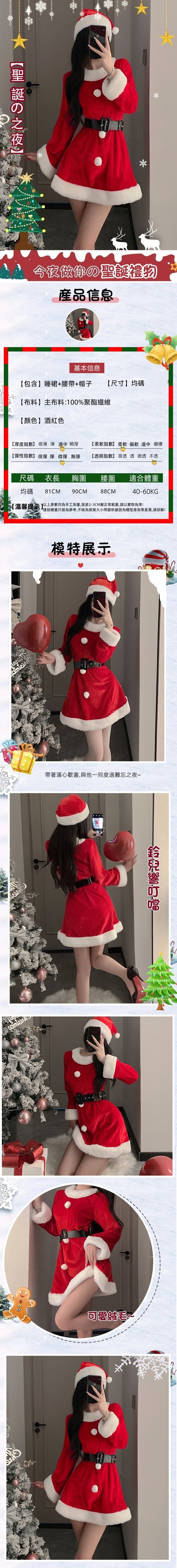 聖誕節經典保守款絲絨長袖連身裙套裝