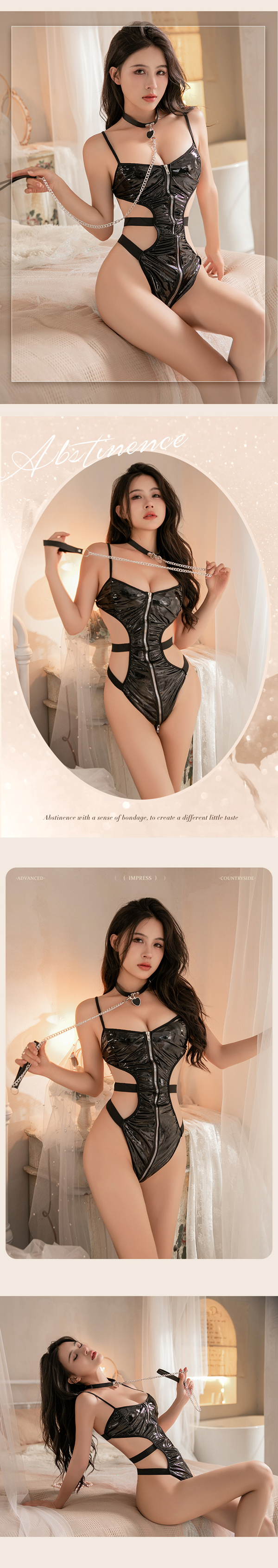 中大尺碼 牽引束縛漆皮性感開襠連身衣