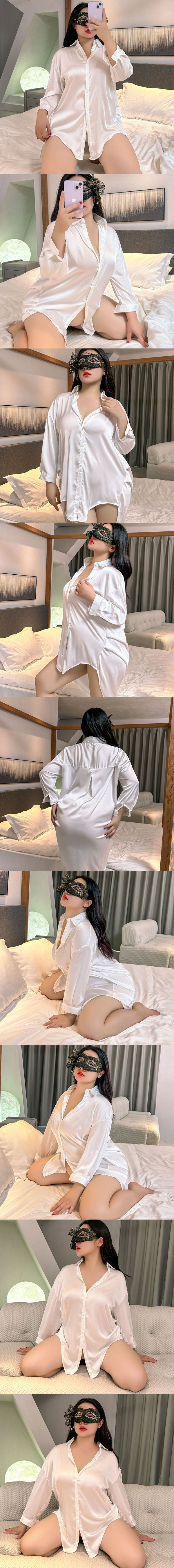 冰絲寬鬆性感男友風襯衫情調睡衣