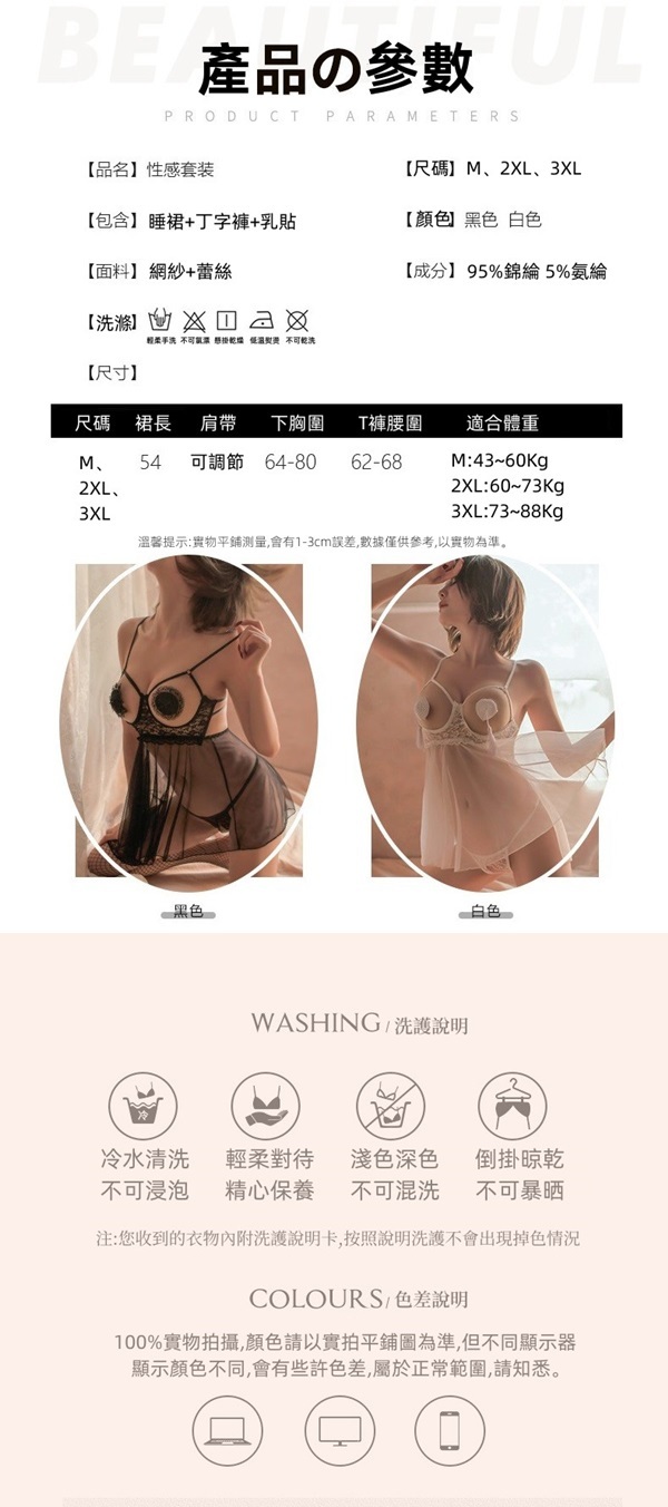■商品內容:睡裙+丁字褲+乳貼