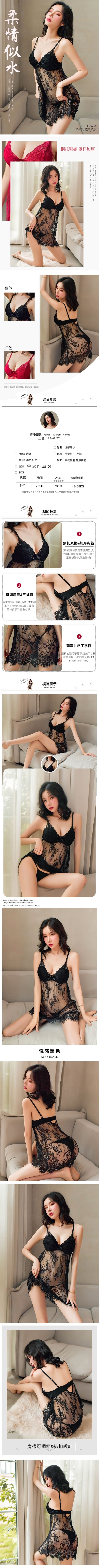 鋼托聚攏性感蕾絲吊帶睡裙兩件組