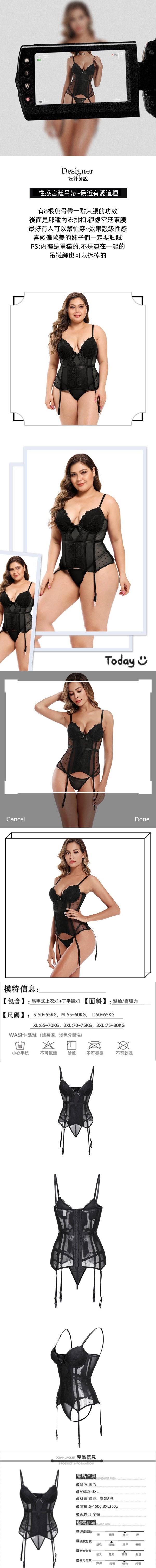 無鋼圈分體套裝吊襪帶性感排扣睡衣