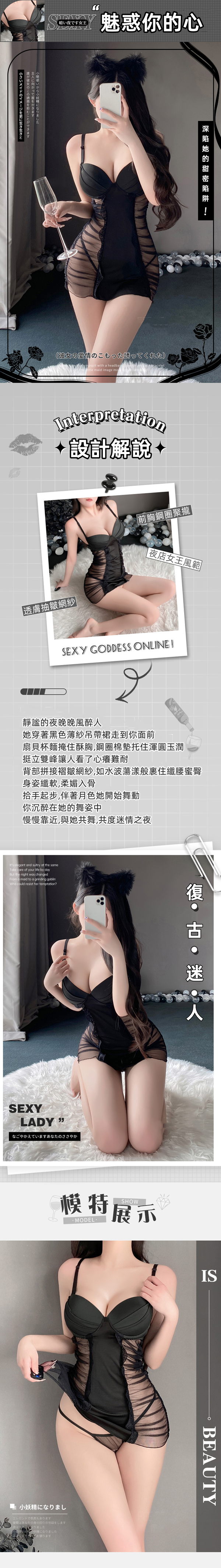 ※ 商品內容:柔紗睡衣+同系列丁字褲。