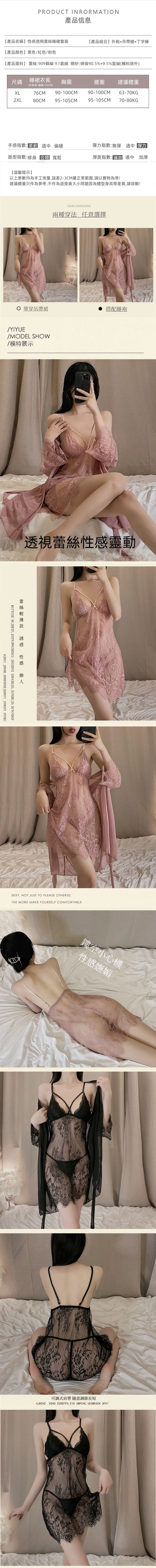 火辣鏤空帶胸墊透視蕾絲吊帶睡裙套裝