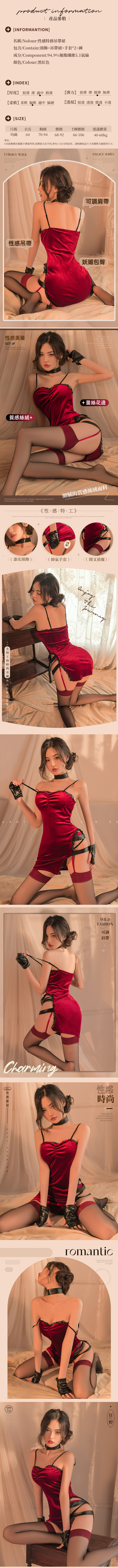 性感吊帶特務漆皮開叉鏤空連身套裝