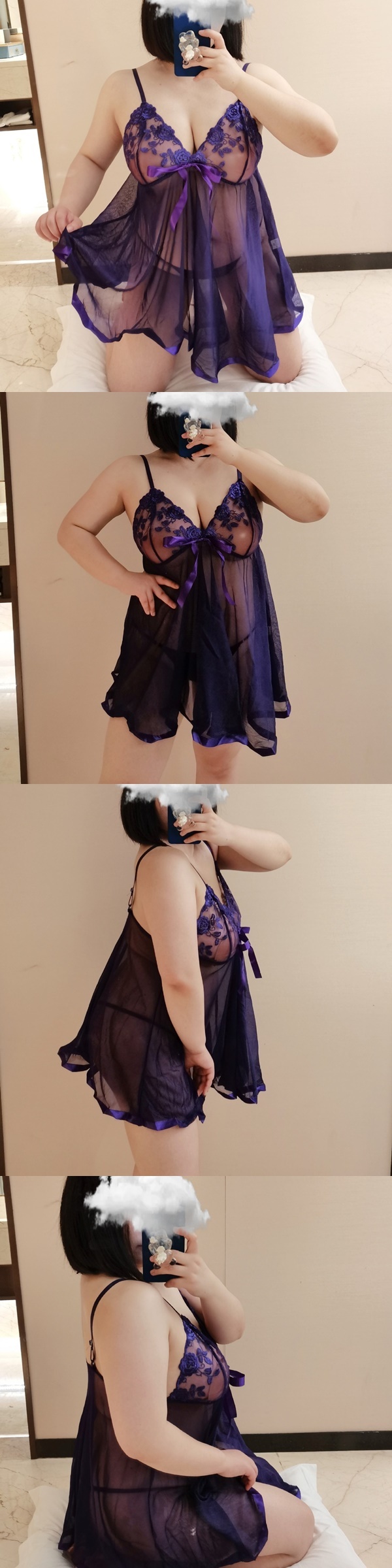 中大尺碼胸口繡花蕾絲加大碼薄紗睡衣(睡裙x1+丁字褲X1)