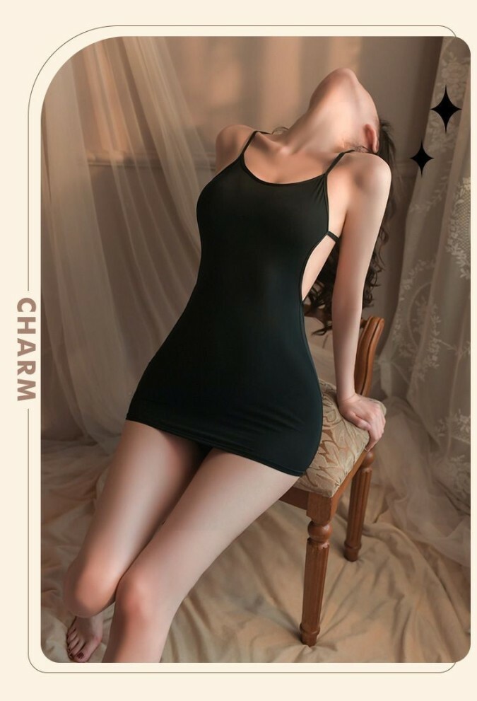 誘惑吊帶放射線條裸背緊身包臀短裙