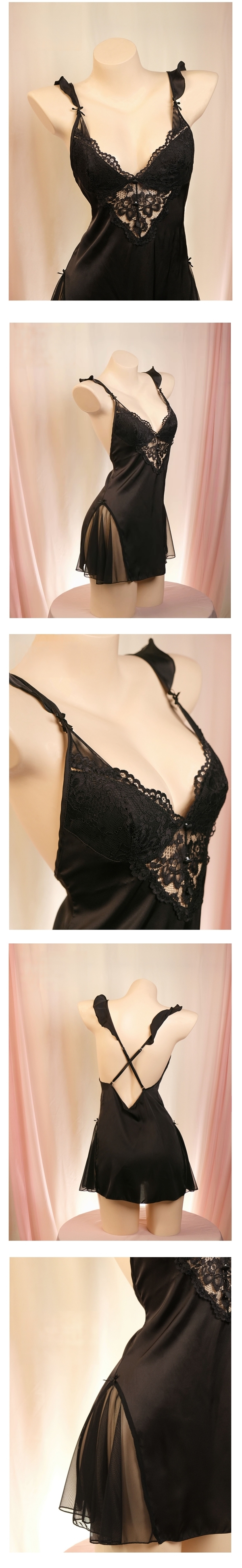 冰絲吊帶性感蕾絲鏤空帶胸墊睡衣