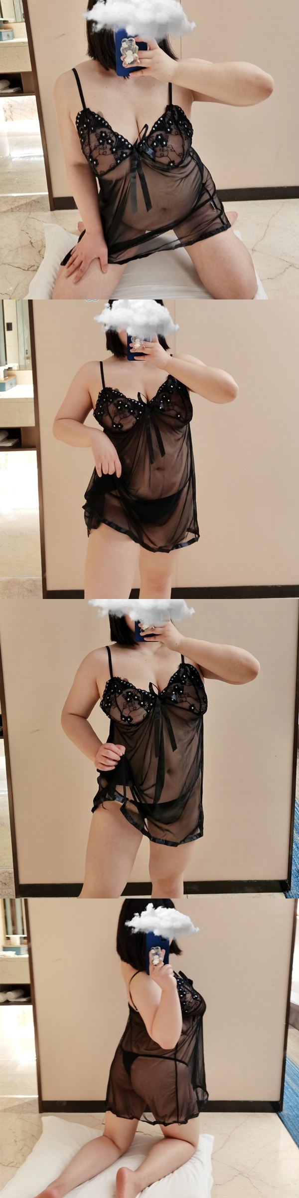 中大尺碼透明胸口亮片加大碼薄紗睡衣(睡裙x1+丁字褲X1)