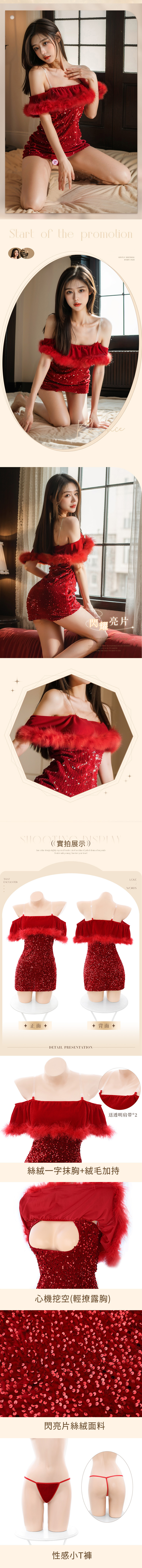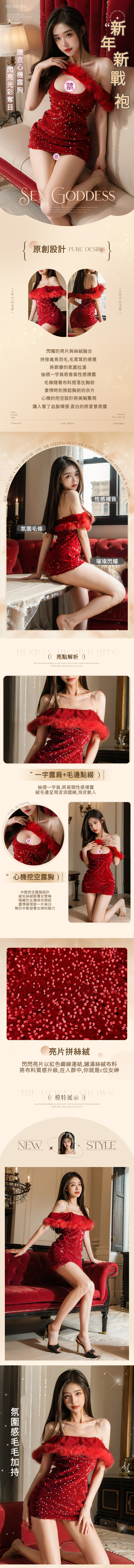 一字肩 絲絨亮片連身睡裙 性感新年戰袍