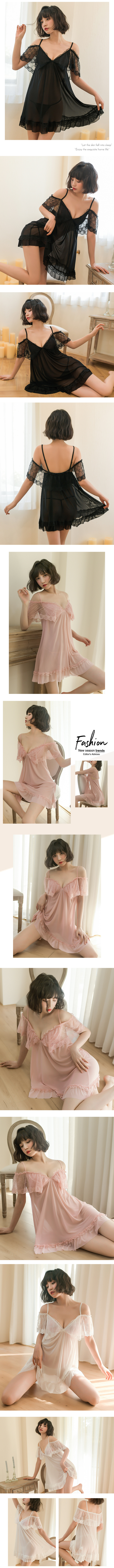 透視性感網紗荷葉邊吊帶睡衣