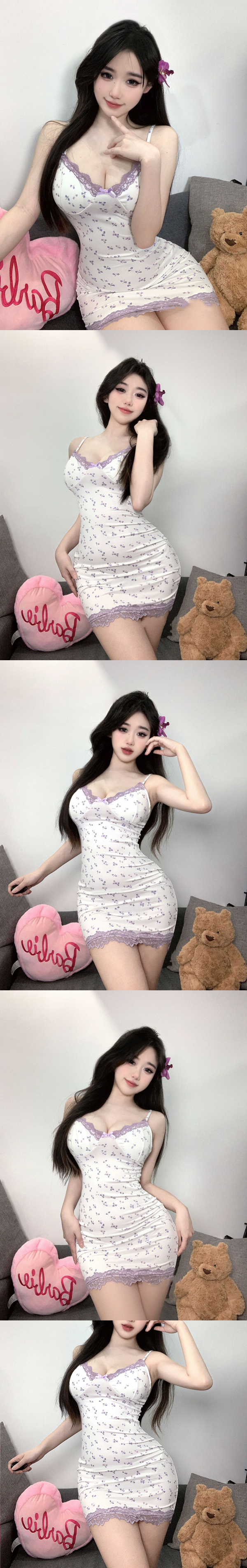 中大尺碼 純慾紫色碎花性感誘惑睡衣【含胸墊】