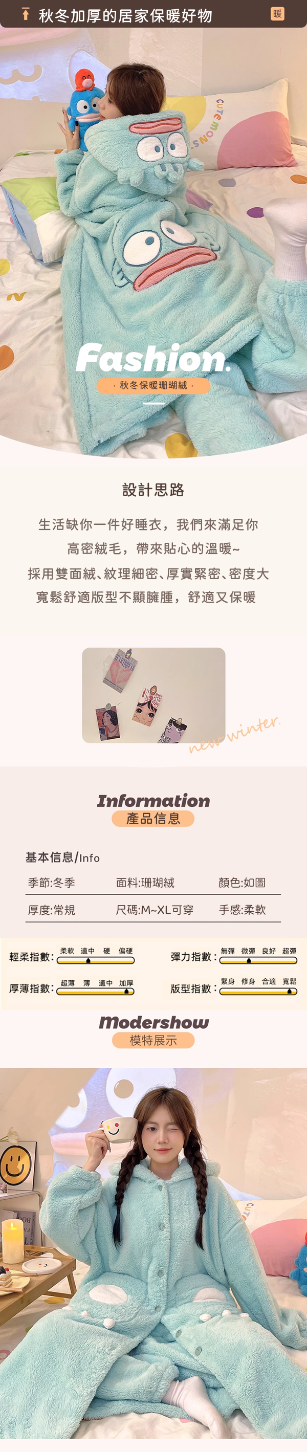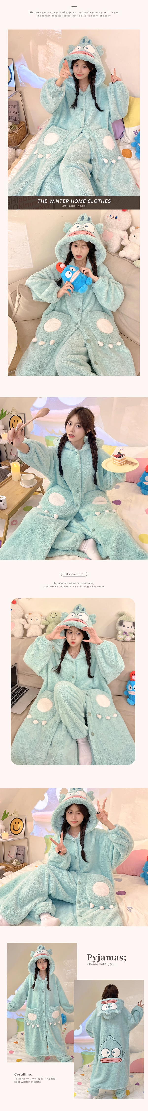 高顏值甜美小丑魚卡通加絨加厚長款珊瑚絨連帽睡袍可愛家居睡袍