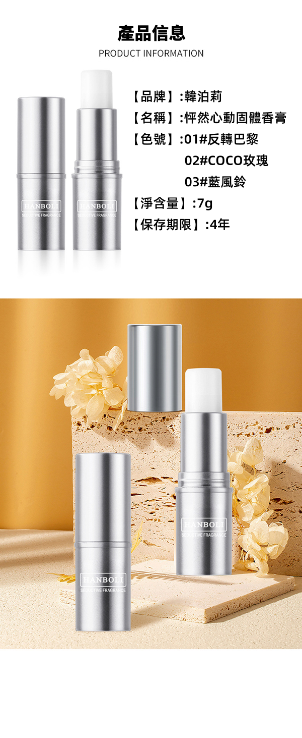 1000滿額禮【心曠神怡】HANBOLI韓泊莉怦然心動持久留香口袋固體香膏009711