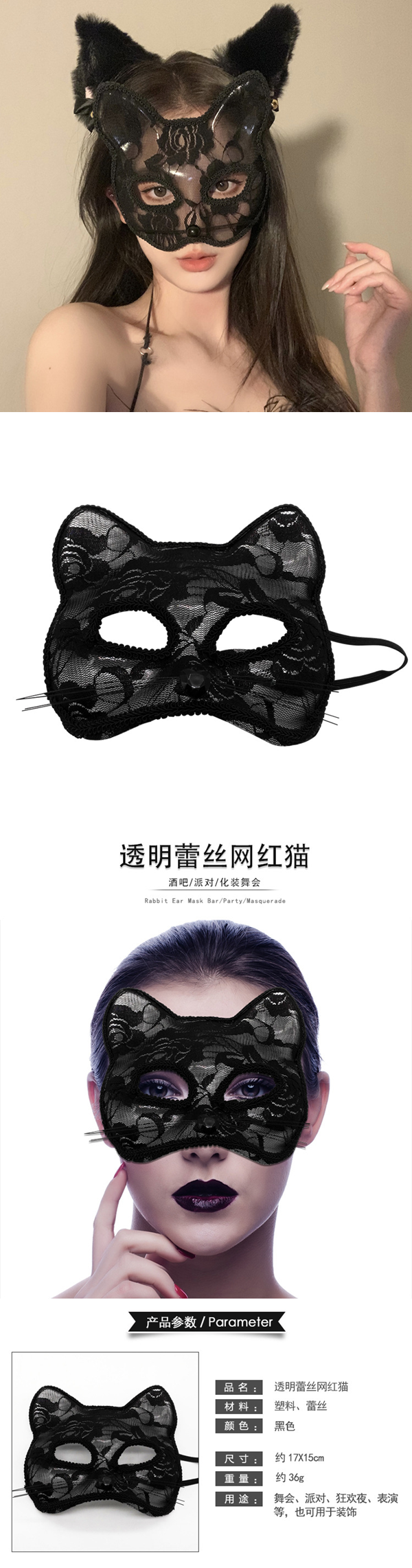 貓耳朵全臉面具 情趣女蕾絲動物派對舞台道具面罩