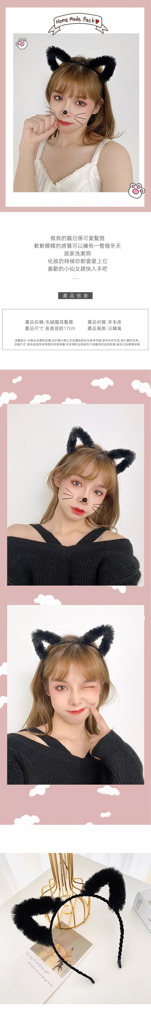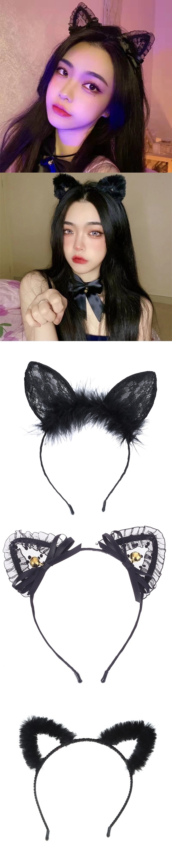 毛絨黑色蕾絲貓兔耳朵髮箍