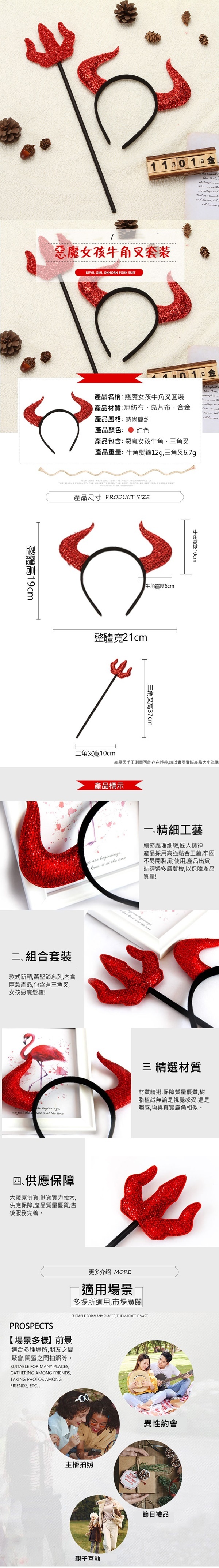 萬聖節 裝扮道具惡魔髮箍牛角叉套裝