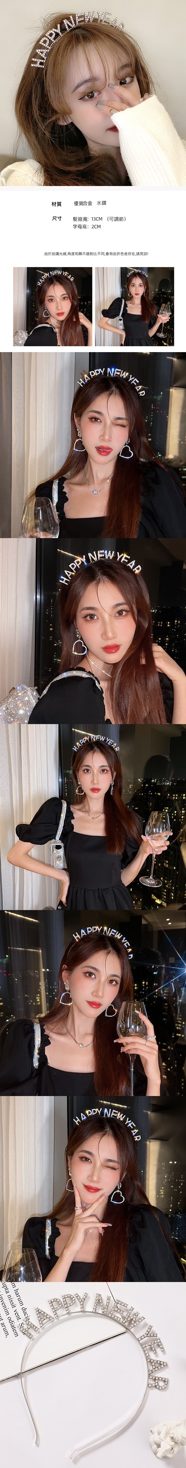 穿搭配件【新年快樂】閃鑽字母髮箍氛圍感聚會自拍神器004332