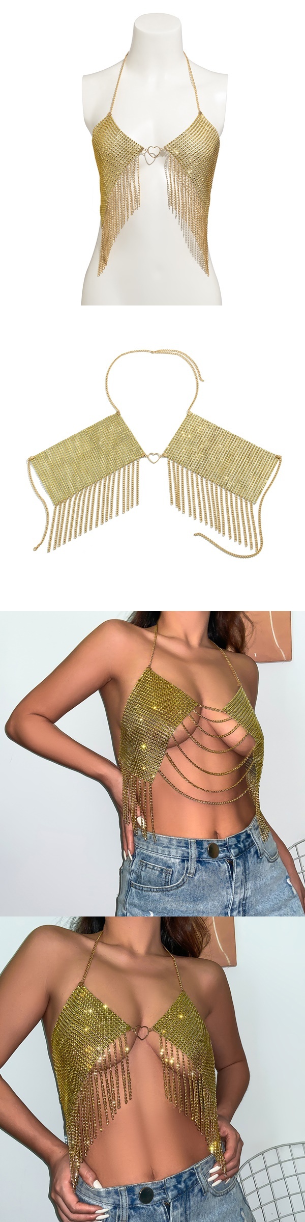 性感辣妹手工網鑽比基尼時尚流蘇心型胸鏈