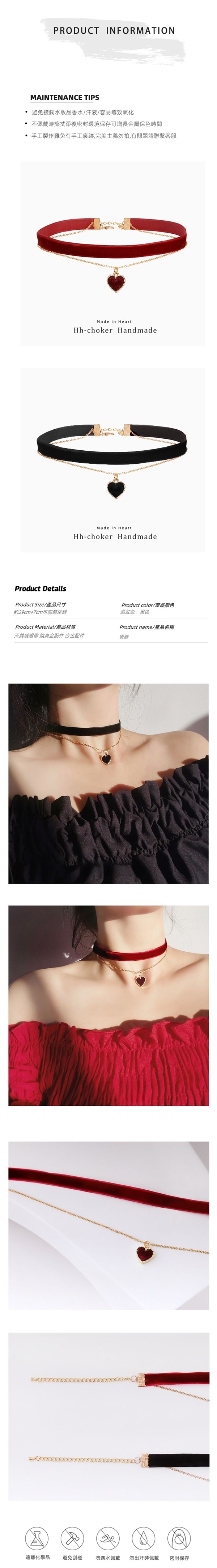 雙層鎖骨鏈愛心絲絨頸鍊項圈項鍊