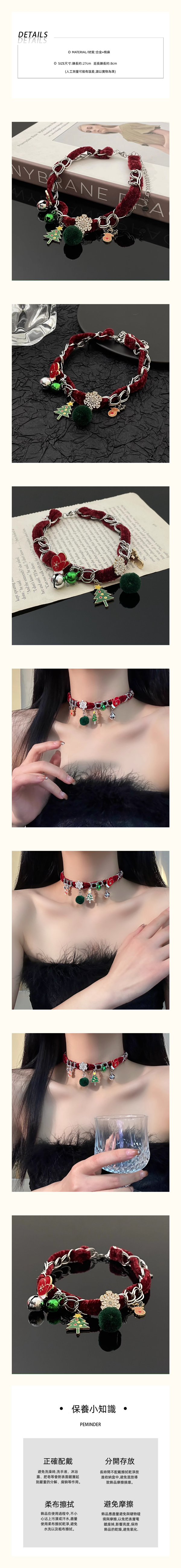 紅色毛絨聖誕元素麋鹿鏈條鈴鐺鎖骨鏈頸鍊