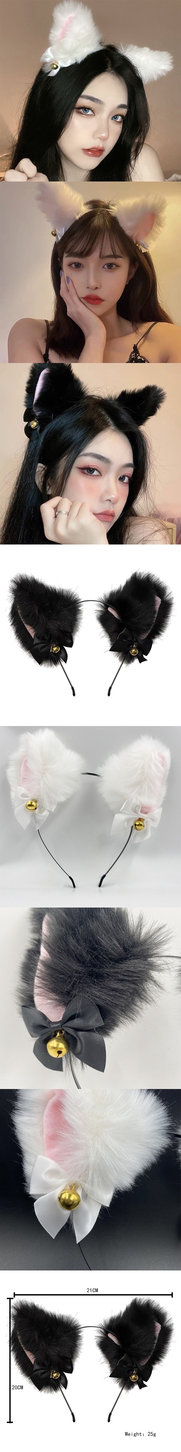 仿真毛絨立體鈴鐺貓耳朵髮箍