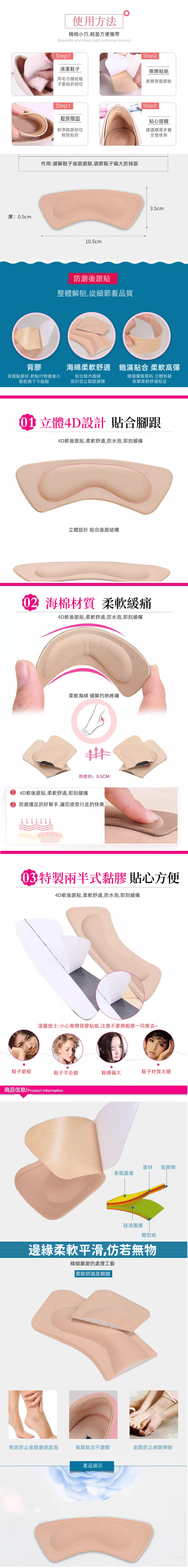 4D海棉腳跟貼防掉跟神器防磨鞋防磨腳神器