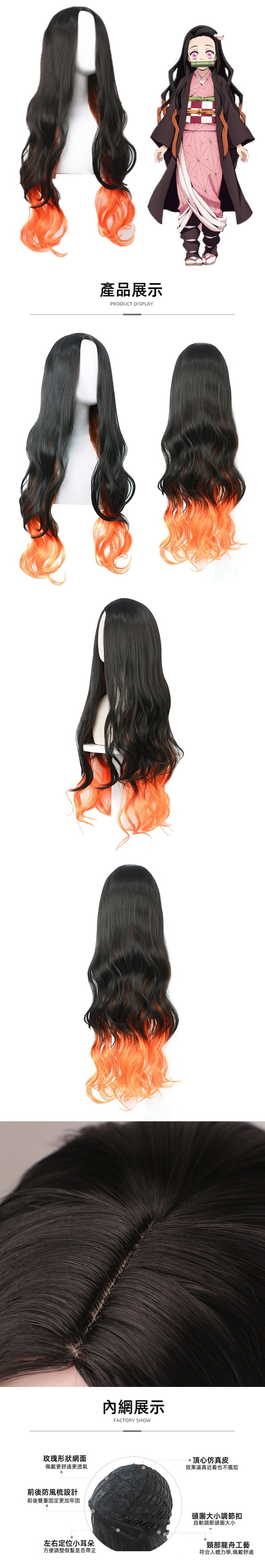 鬼滅之刃.彌豆子 / 中分大波浪長捲髮 / 黑橘色