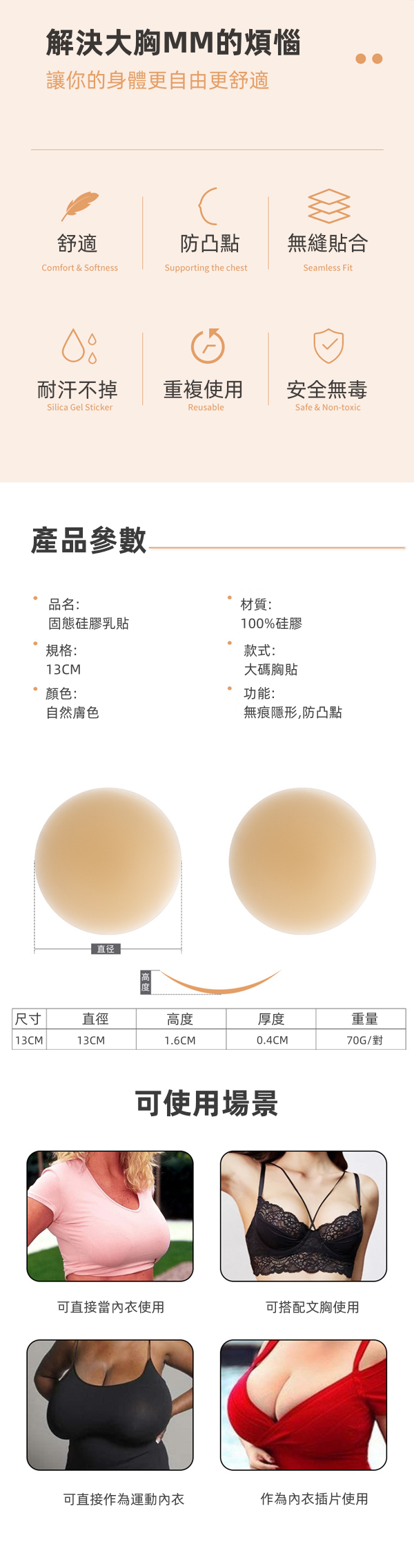 大胸MM 胸貼 防凸點 黏膠款輕薄隱形胸貼