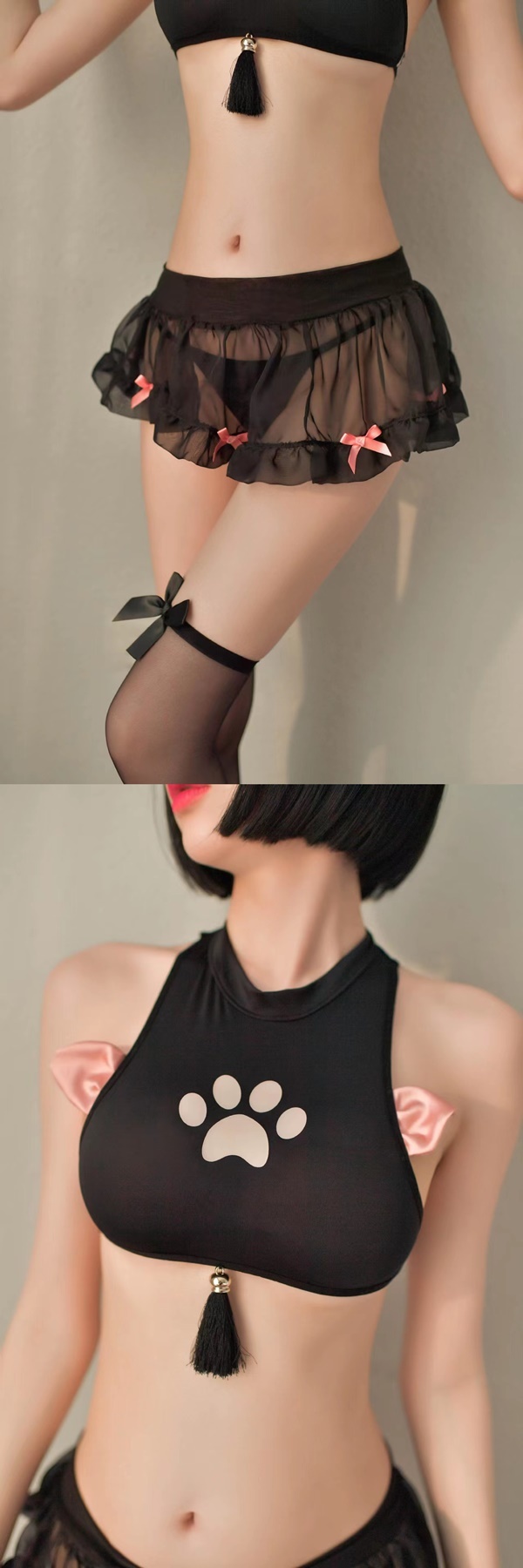 二次元可愛貓爪角色扮演三件組(文胸x1、丁字褲x1、裙子x1)