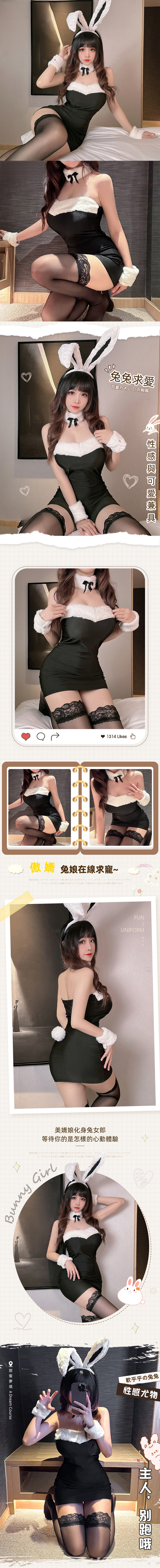 ※ 商品內容:兔耳髮箍+頸環+連衣裙+丁字褲+手環*2(不含絲襪)